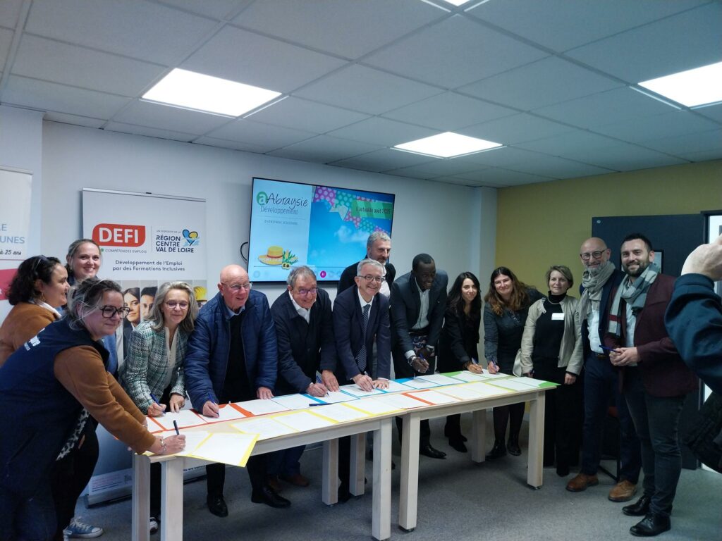 Aabraysie Développement et RESPIRE ont signé une convention avec François BONNEAU – Président de la Région Centre Val de Loire pour la formation professionnelle DEFI FLE SIAE, un dispositif qui est dédié à l’apprentissage du français pour les salariés en insertion.